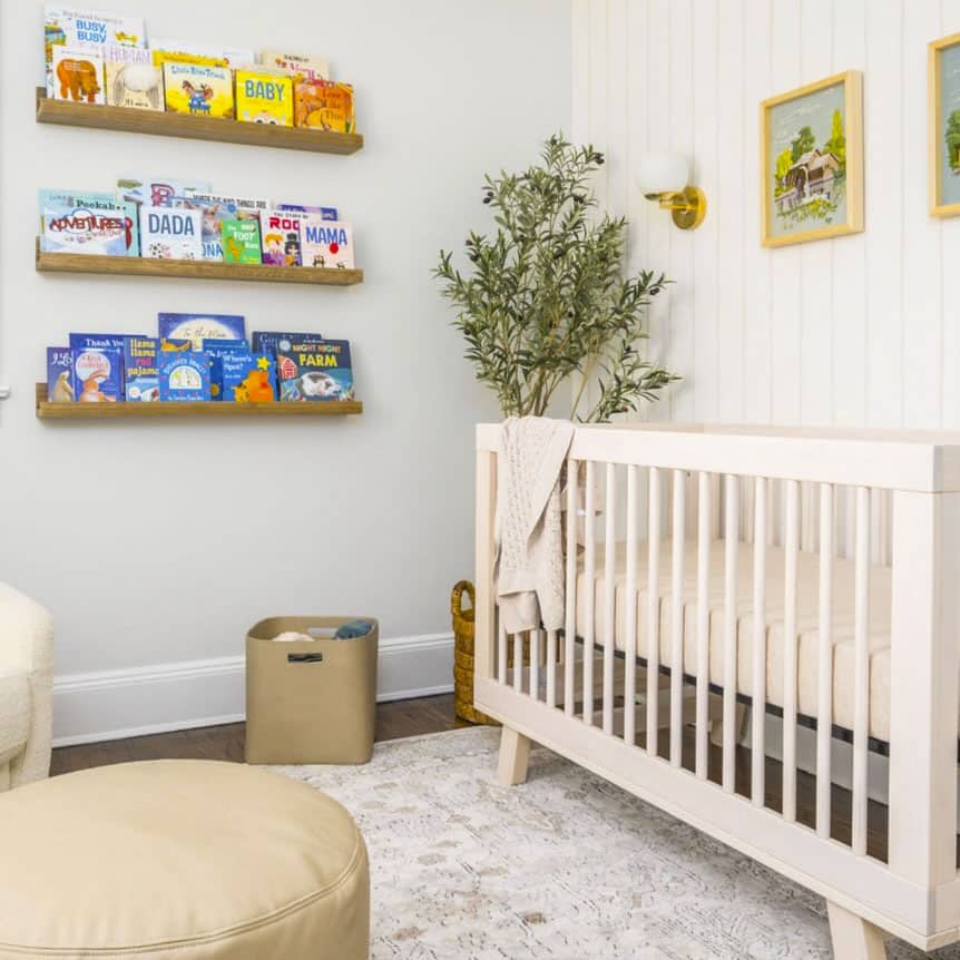 Use slim, front-facing bookshelves so books double as room decor while giving your kids a clear view of their choices. This setup creates daily opportunities to learn and discover while encouraging independent reading from an early age.