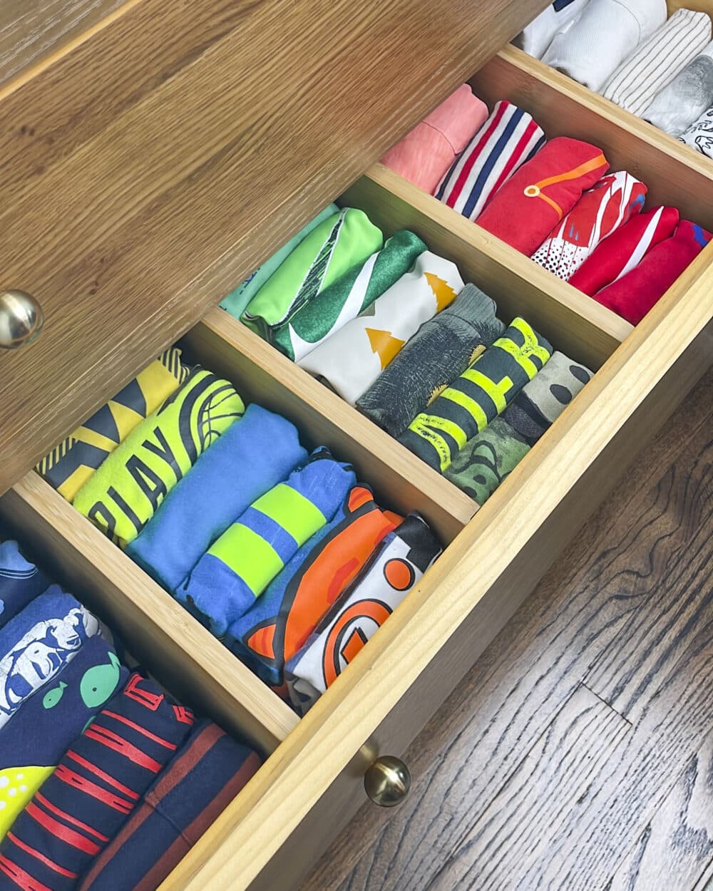 Save time getting your kids dressed in the morning using drawer dividers. They create separation between categories allowing you and your child to easily see what you have, while keeping your folds neat and tidy.