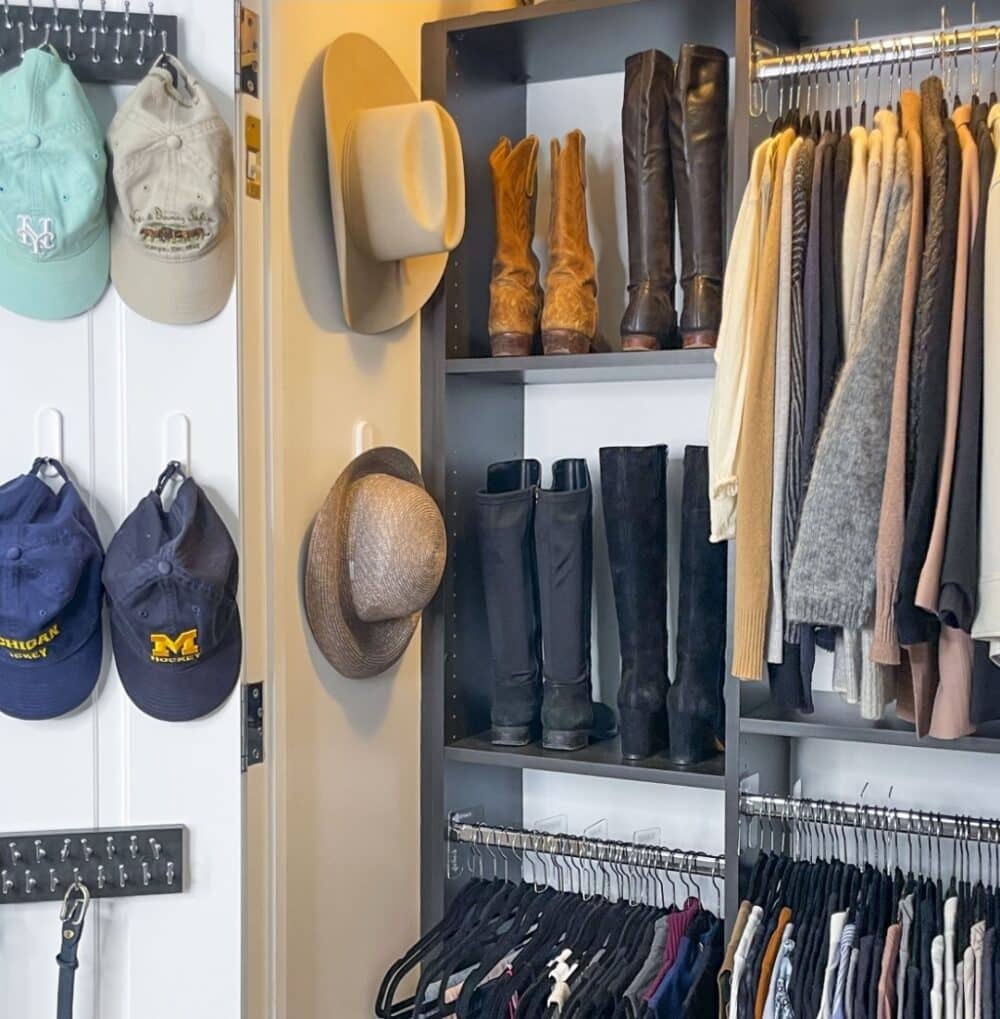 Boot racks can feel bulky and distracting in an otherwise well-organized closet. That’s why we love using boot shapers! They keep boots upright, protect their shape, and offer far more flexibility in where and how you store them, so your closet works for you and not the other way around.