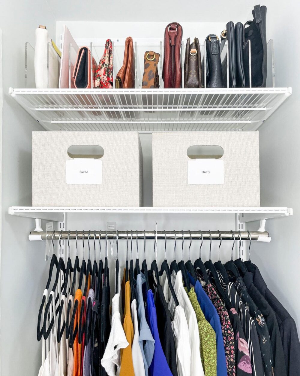 TIP: For larger bags, consider using purse stuffers and sturdy shelf dividers to maintain the structure and shape of your bags!